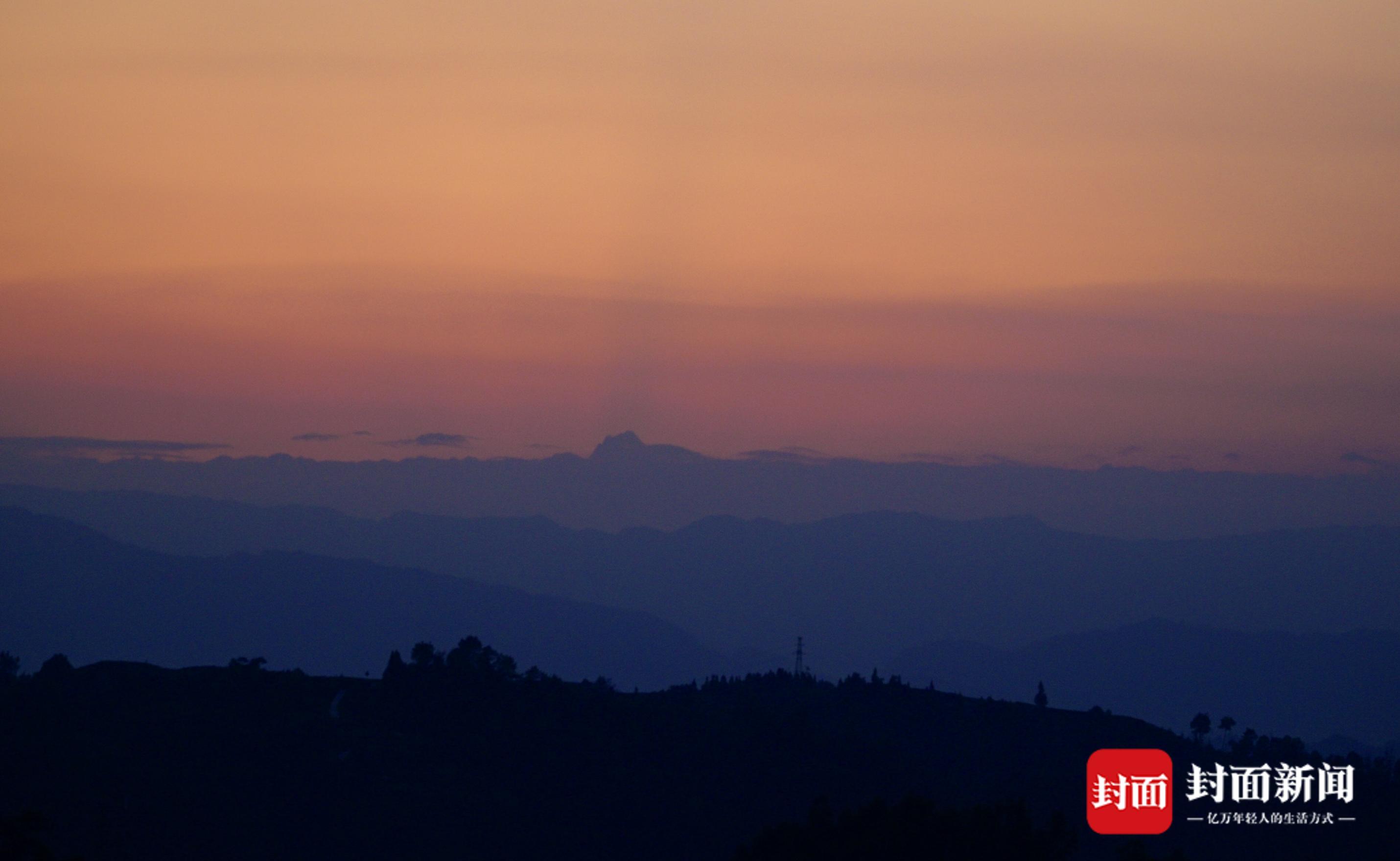 9月24日,雅安市名山区骑龙茶园,黄昏里的贡嘎山。