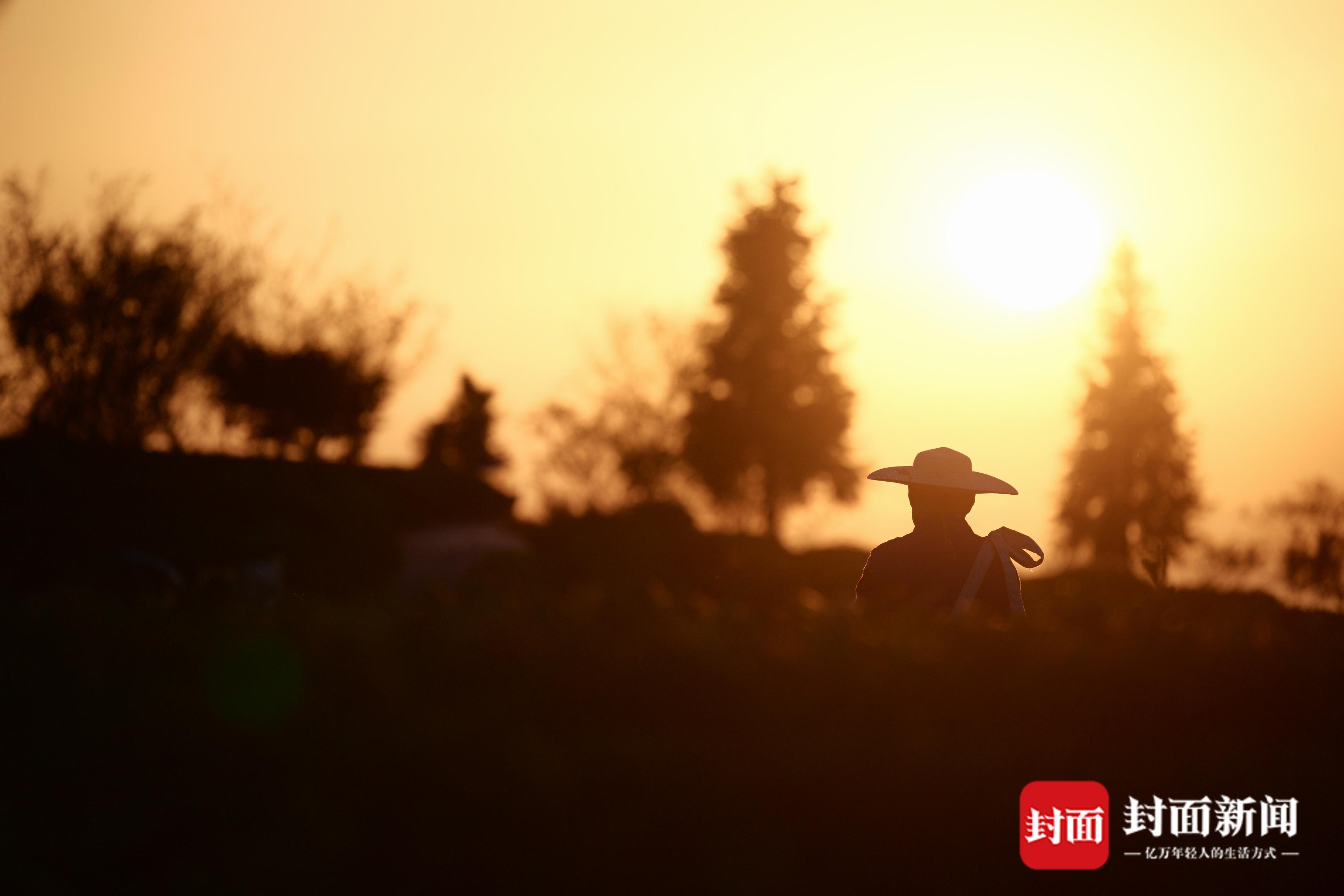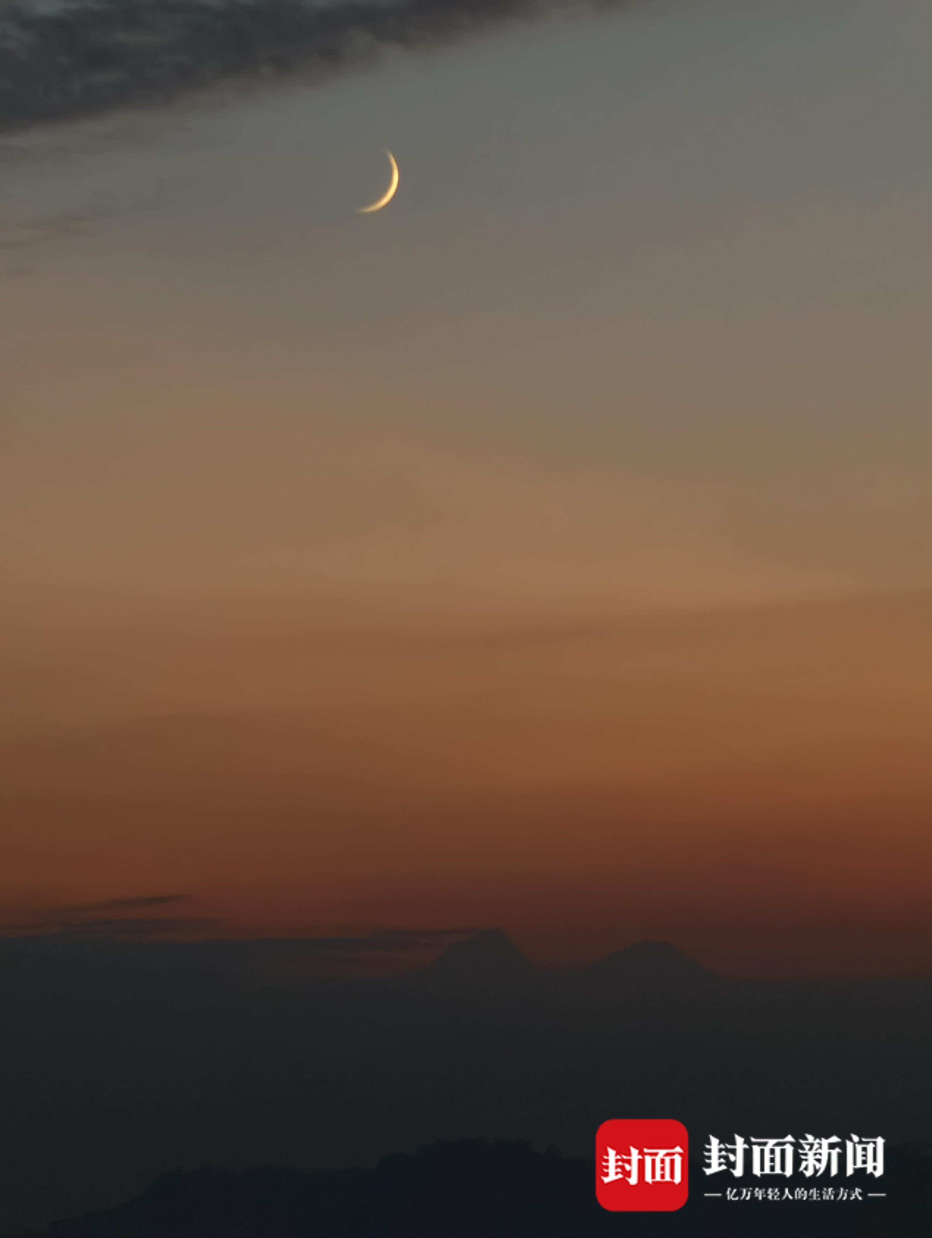 9月24日启运操盘,四川大部分地区天气晴朗,黄昏时分,月亮从贡嘎山方向落下。晚霞中,群山环抱。在雅安市名山区骑龙茶园启运操盘,不少摄影爱好者远道而来,用相机记录下这一美景。