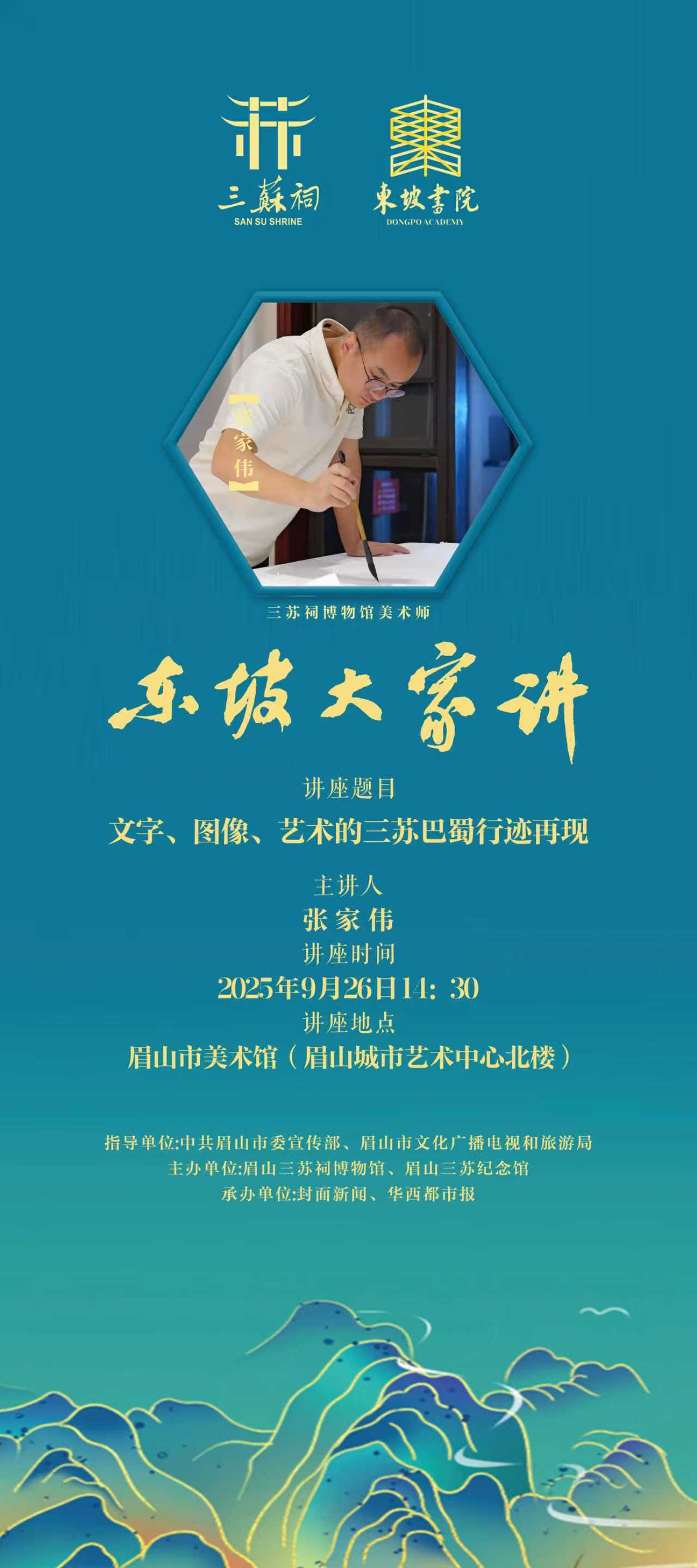 当天,张家伟将带来《文字、图像、艺术的三苏巴蜀行迹再现》分享。