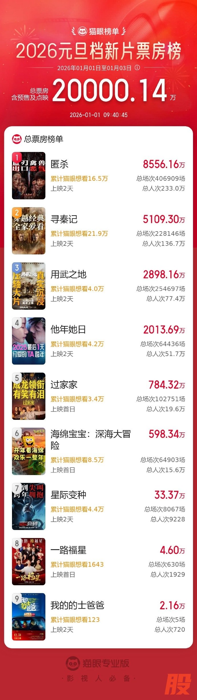 2026元旦档新片总票房破2亿元2026元旦档新片总票房破2亿元