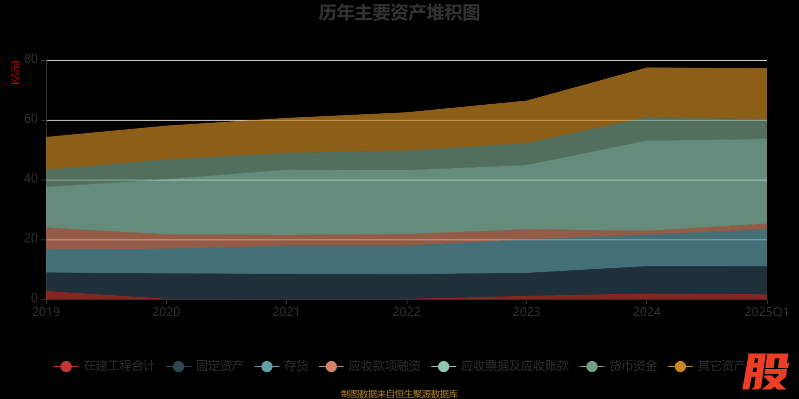 资产重大变化方面,截至2025年一季度末,公司存货较上年末增加18.25%,占公司总资产比重上升2.52个百分点;应收票据及应收账款较上年末减少6.13%,占公司总资产比重下降2.29个百分点;货币资金较上年末减少16.2%,占公司总资产比重下降1.62个百分点;应收款项融资较上年末增加41.91%,占公司总资产比重上升0.71个百分点。
