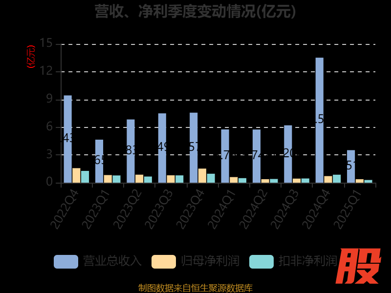 截至2025年一季度末,公司经营活动现金流净额为-9915.39万元,同比减少1.2亿元;筹资活动现金流净额4448.71万元,同比减少1.6亿元;投资活动现金流净额-4648.08万元,上年同期为-3684.27万元。